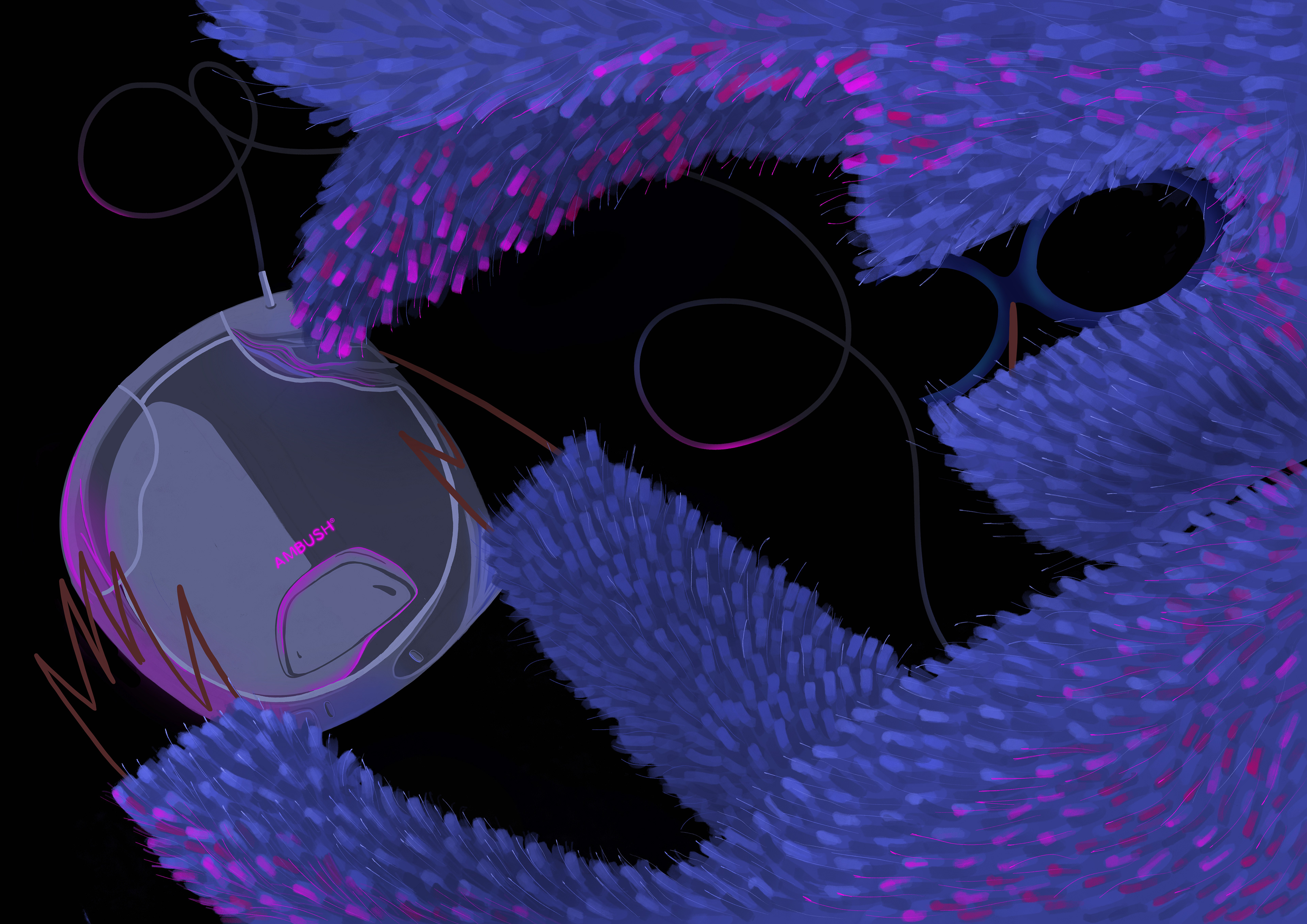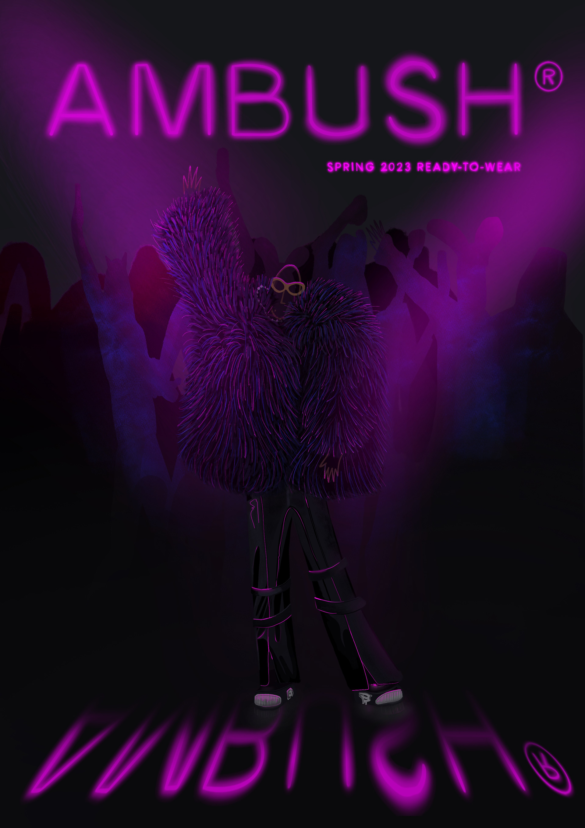 Fashion illustration for Ambush brand, spring 2023 season "ready to wear". After extensive analysis of the ideas and concepts behind this season, I produced the following set of cover images, and portrait and still life images of some distinctive garments.